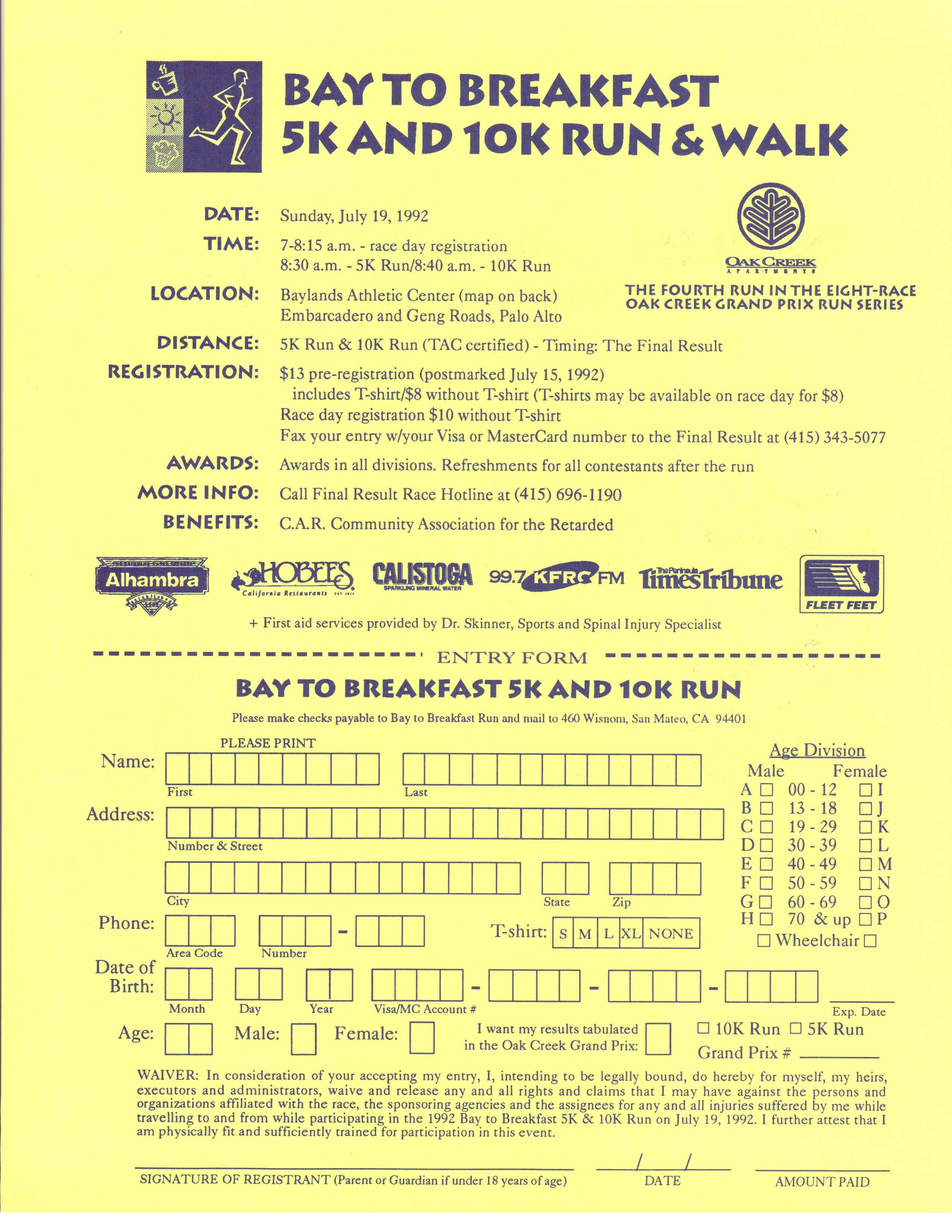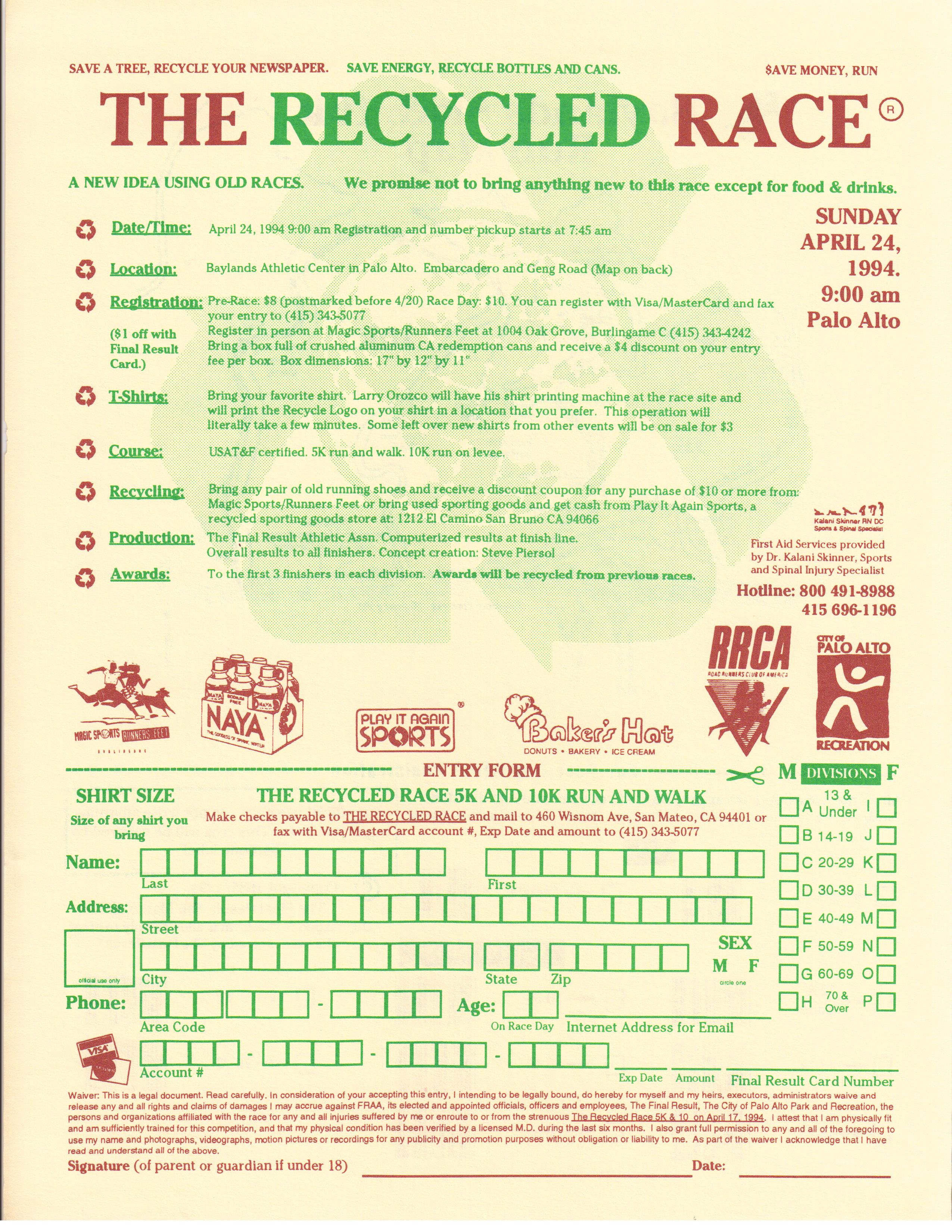 In 1986, Apple Computer sponsored a running race for its employees and the public called Silicon Rally.