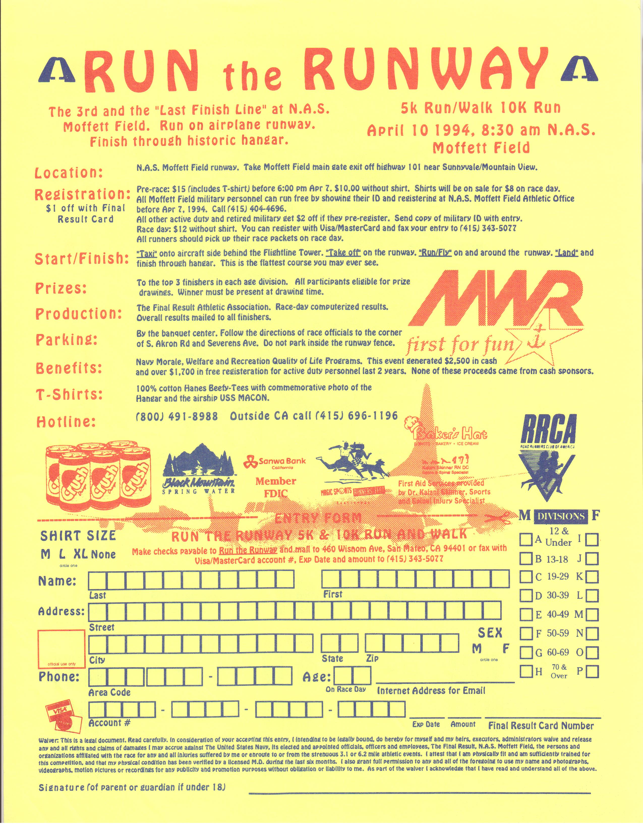 World Cup 5K and 10K. He produced the Run the Runway events for 5 years at both Moffett and Alemeda