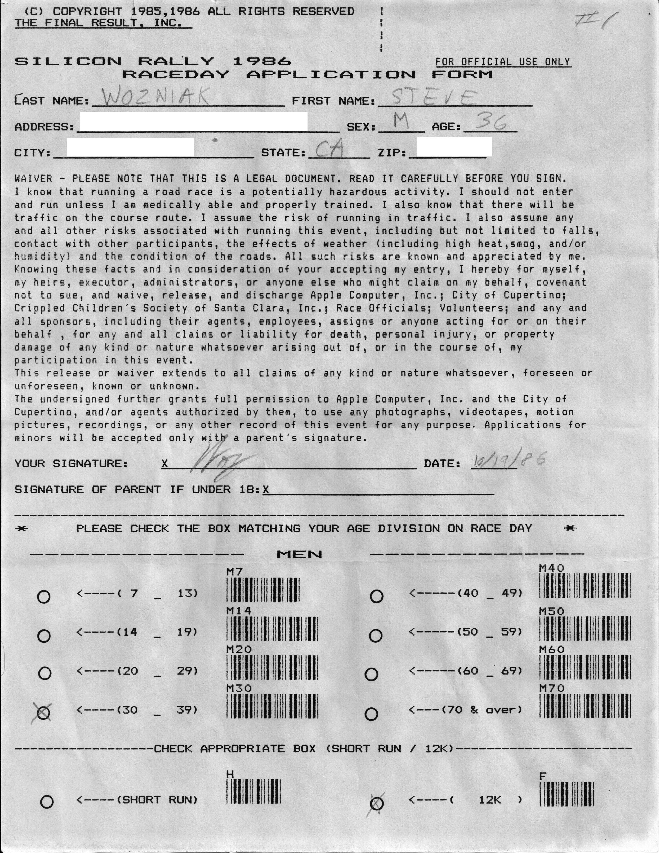 MS-DOS. They were used at the finish line. Steve Wozniak ran the race. As you can see, he received
